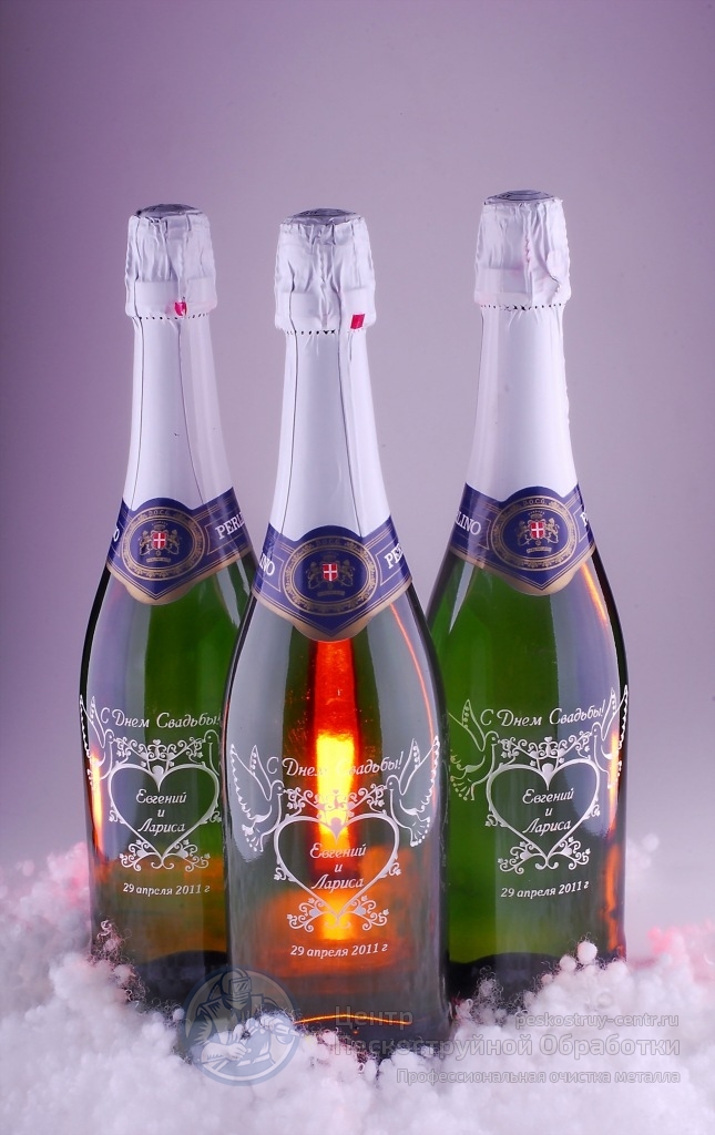 Примеры пескоструйных рисунков на шампанском